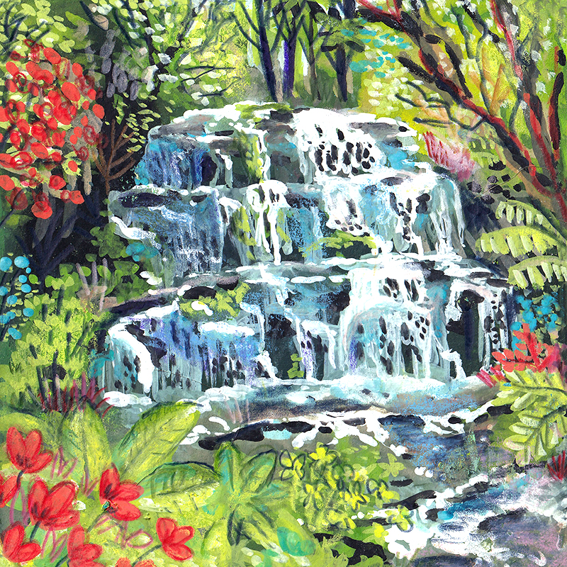 Les chutes Purakaunui / illustration / Par admin Les chutes Purakanui, Nouvelle-Zélande. Peinture réalisée à la gouache.